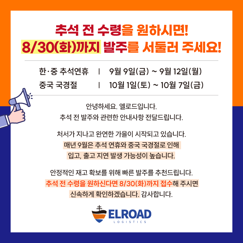 ¾ÈÁ¤ÀûÀÎ Àç°í È®º¸¸¦ À§ÇØ ºü¸¥ ¹ßÁÖ¸¦ Ãßõµå¸³´Ï´Ù.