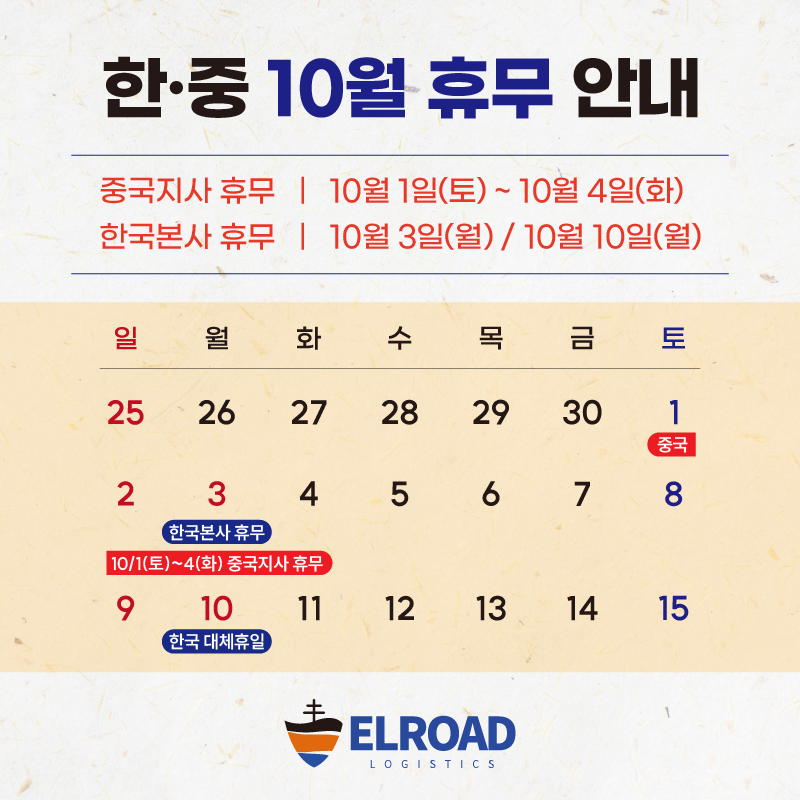10/1(Åä)~10/4(È) ±¹°æÀý Áß±¹Áö»ç ÈÞ¹«,