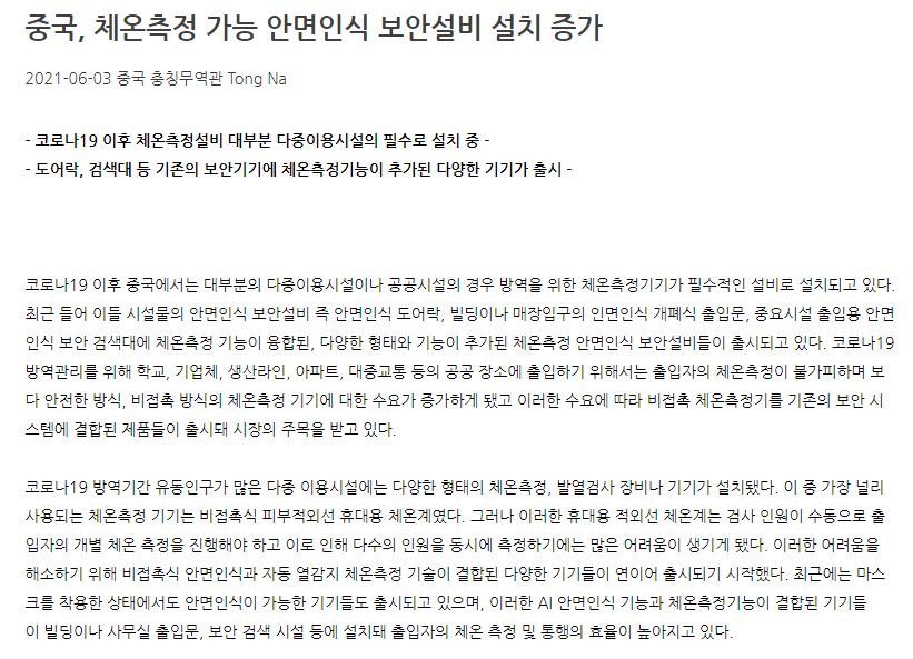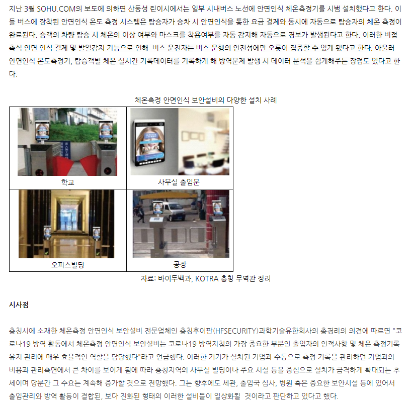 Á¦¸ñ Áß±¹, ü¿ÂÃøÁ¤ °¡´É ¾È¸éÀÎ½Ä º¸¾È¼³ºñ ¼³Ä¡ Áõ°¡