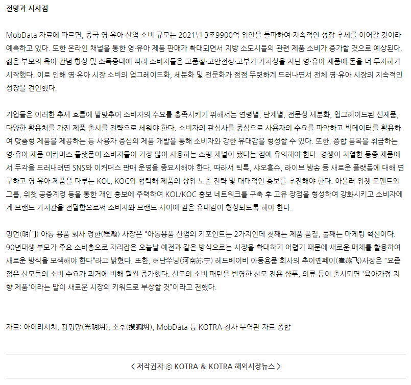 Á¦¸ñ Áß±¹ ¿µ¡¤À¯¾ÆÁ¦Ç° ½ÃÀå ¼ÒºñÆ®·»µå º¯È­