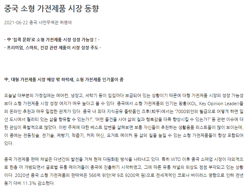 Á¦¸ñ Áß±¹ ¼ÒÇü °¡ÀüÁ¦Ç° ½ÃÀå µ¿Çâ
