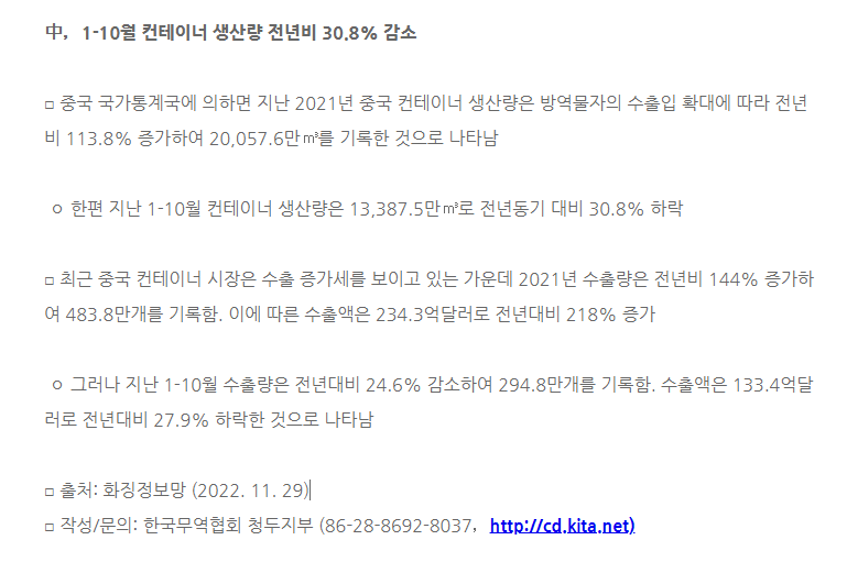 Á¦¸ñ ñ飬1-10¿ù ÄÁÅ×ÀÌ³Ê »ý»ê·® Àü³âºñ 30.8% °¨¼Ò