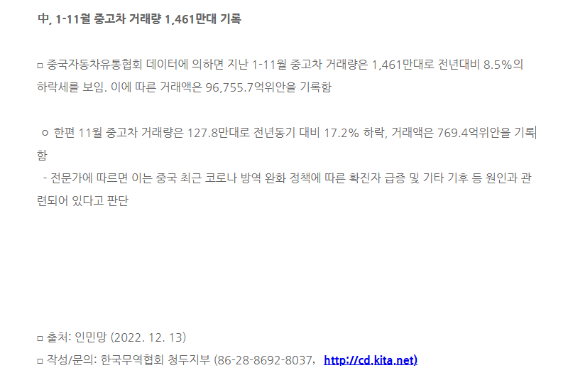 Á¦¸ñ ñé, 1-11¿ù Áß°íÂ÷ °Å·¡·® 1,461¸¸´ë ±â·Ï