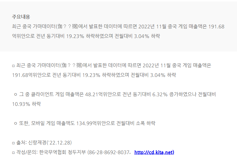 Á¦¸ñ ñ飬11¿ù °ÔÀÓ ¸ÅÃâ¾× Àü³â µ¿±â´ëºñ 19.23% Ç϶ô