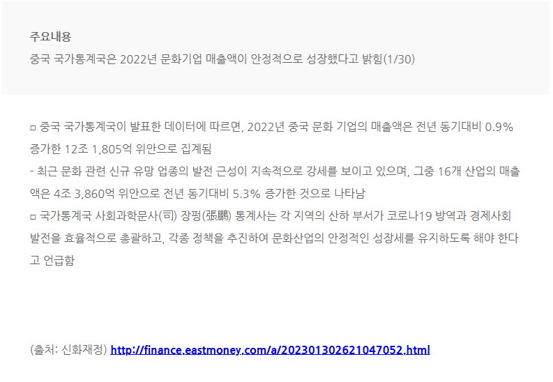 Á¦¸ñ ñé ±¹°¡Åë°è±¹, 2022³â ¹®È­±â¾÷ ¸ÅÃâ¾× ¾ÈÁ¤ÀûÀ¸·Î ¼ºÀåÇØ